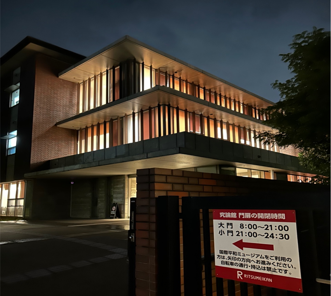 衣笠校区为研究生们提供了一栋专用的3层独立建筑“究论馆”,刷卡入馆,馆内为每位研究生提供一人一座的专用坐席与电子锁储物柜,在每层楼的大厅还设有共同研讨空间,以及刷员工证即可免费使用的公用电脑、打印机、复印机以及扫描仪等设备。在馆内,员工们不仅可以进行独立、安静的学术研究,还可以随时利用共同研讨空间开展学术互动交流。此外,馆内还配备了冰箱、电磁炉、微波炉等生活设施,为研究生们提供了足够便利的生活支持。